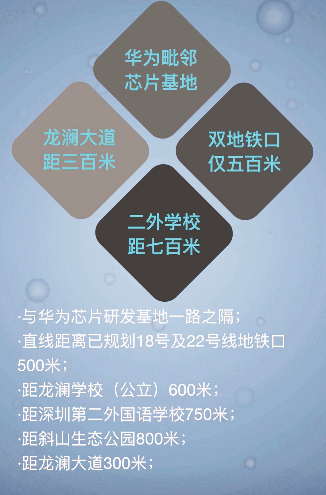 2 ,華為總部芯片基地選址大水坑,與本項目距離20米,華為駕到,吾皇萬歲,房價暴拉3倍+,50萬買房,2年后見證第二個坂田,財富秒變150萬。