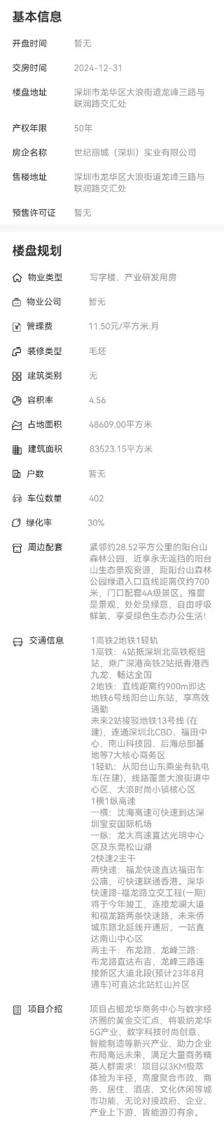 區域:深圳市龍華區大浪街道龍峰三路與聯潤路交匯處