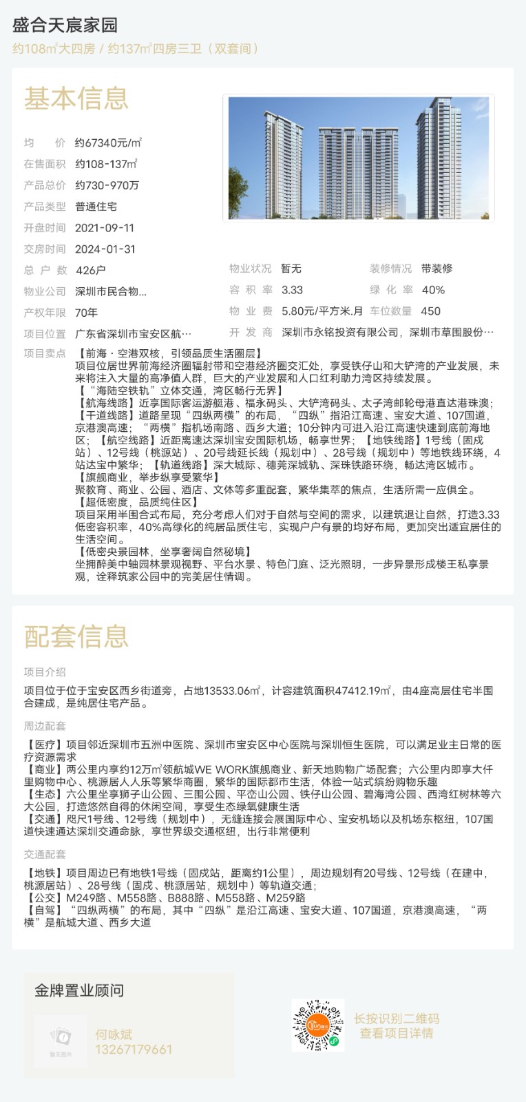 樓盤:盛合天宸家園物業類型:普通住宅戶型:4室面積:約108-137平米總價:約730-970萬聯系人:何詠斌聯系電話:13267179661
