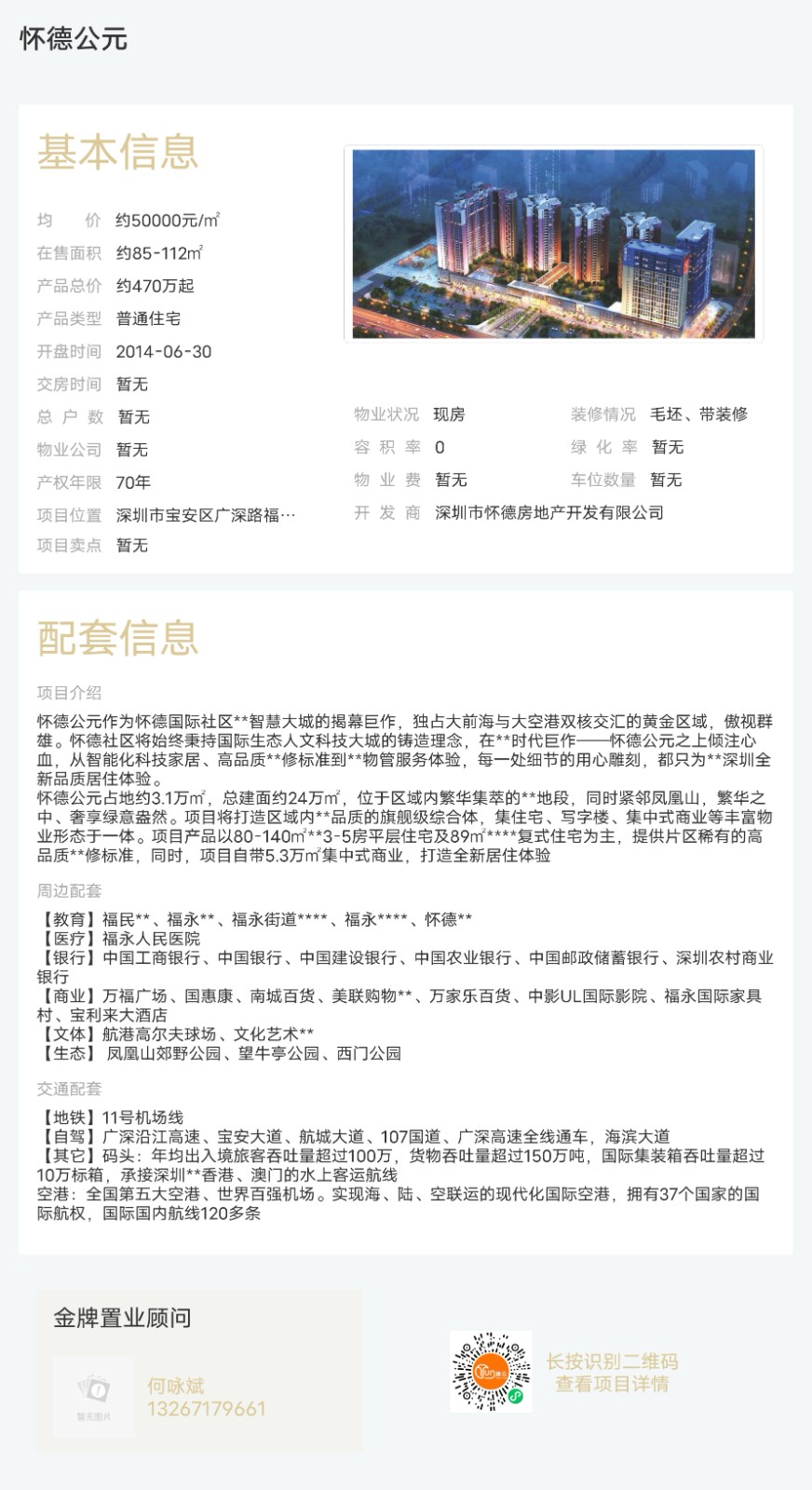 樓盤:懷德公元物業類型:普通住宅戶型:3室面積:約85 39-112平米總價:約470萬起聯系人:何詠斌聯系電話:13267179661